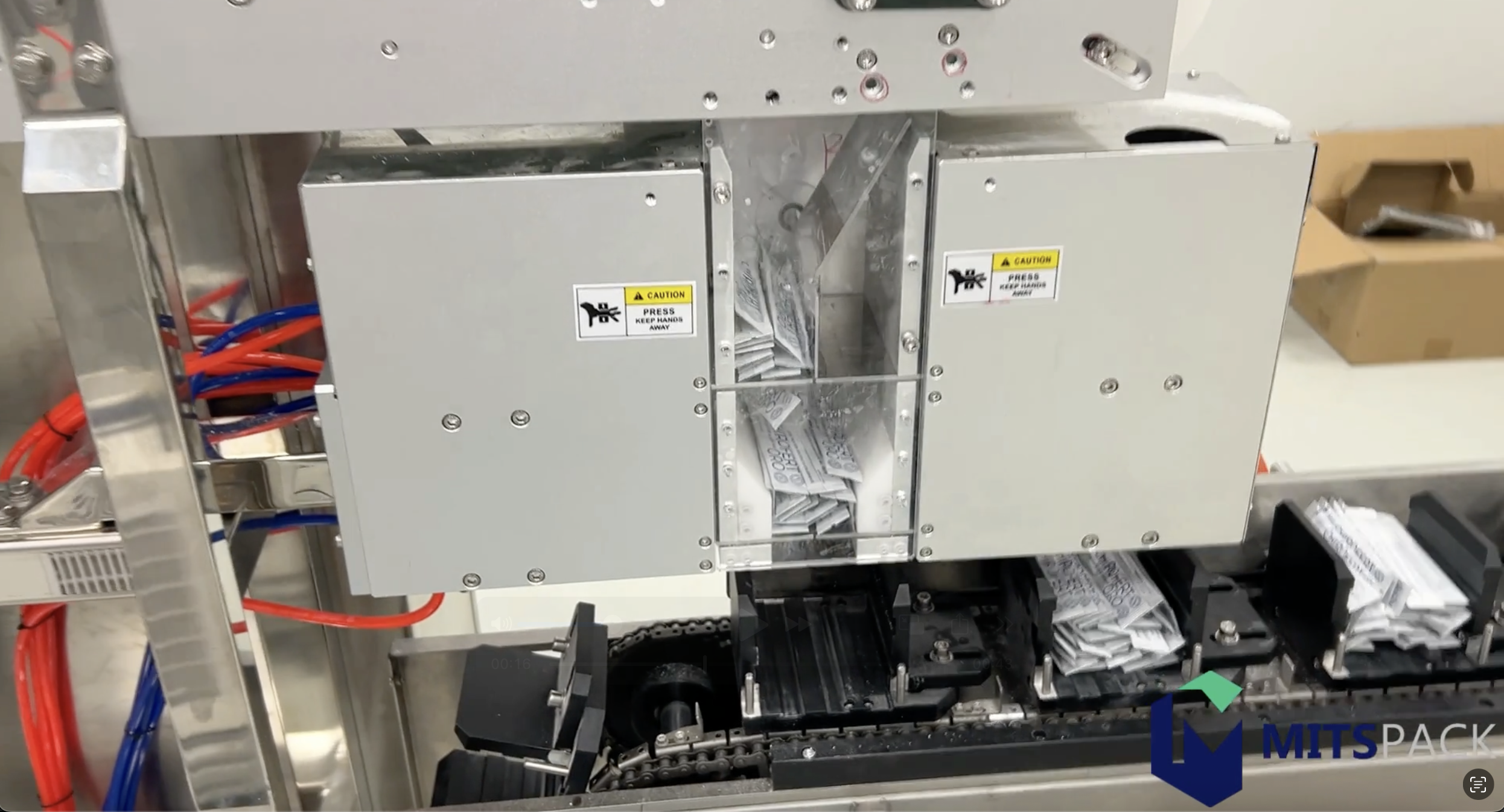 Notre client pharmaceutique en Sicile exploitait une stickeuse 10 pistes haute cadence capable d’atteindre 500 sticks de poudre par minute.
